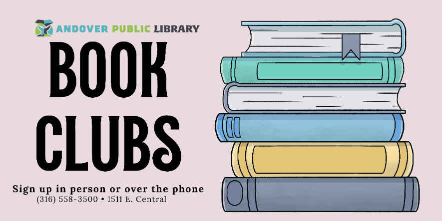 Book clubs meet monthly at the library. Sign up by calling the library at (316) 558-3500 or in person. You can pick up a book club sign-up form at the front desk of the library. Some Book Clubs may be full.
